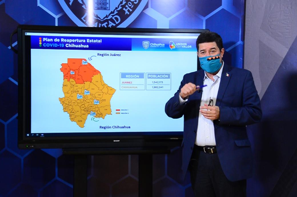 El sistema de semaforización para la reapertura paulatina y segura de actividades económicas, sociales, deportivas y recreativas en el estado, se aplicará de manera diferenciada en la Región 1, que agrupa a Juárez y otros 9 municipios adjuntos, y en la Región 2, con Chihuahua y 56 municipios más.