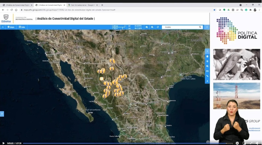 El coordinador de Política Digital (CPD) de Gobierno del Estado, Gustavo Ríos Alcázar, sostuvo un enlace virtual con Enrique González, experto en Analítica de Datos de Telecomunicaciones de la empresa EFTS, quien afirmó que el Plan Hiperconvergente de Conectividad para tener acceso a Internet en todo el estado de Chihuahua, es ícono y referente a nivel nacional y uno de los pocos casos que existen en Latinoamérica.