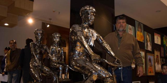 La obra “Familia en Bicicleta” del escultor Martín Nicolás Carreón, originario de ciudad Aldama, fue la ganadora del Premio a la Excelencia; todas las obras permanecerán en exposición en la sala “Francisco Villa” del Palacio de Gobierno, entrada gratuita