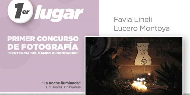 El primer lugar lo ganó la foto con el tema "La noche iluminada", y recibirá 3 mil pesos, mientras que el segundo puesto fue para "Nunca más", con 2 mil pesos y ambas son de la autoría de Favia Lineli Lucero Montoya, de Ciudad Juárez.