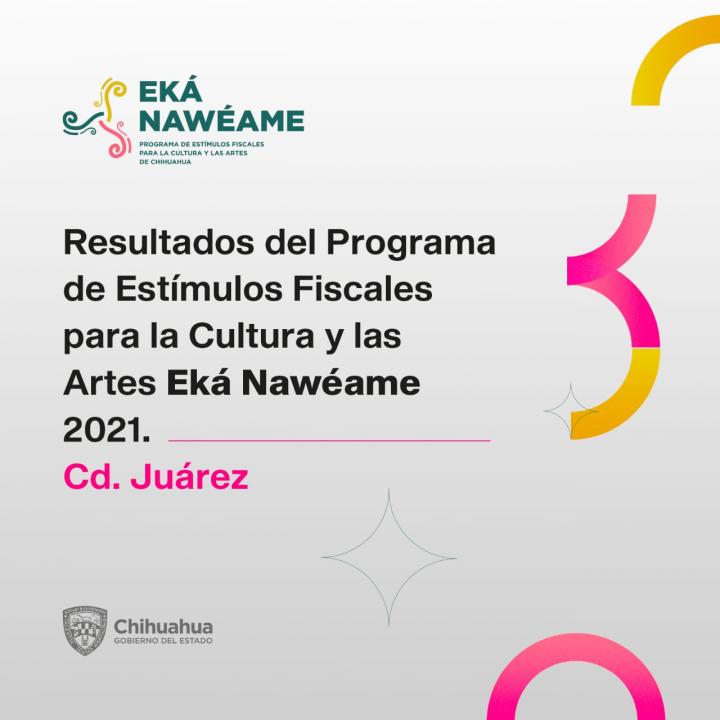 La Secretaría de Cultura de Chihuahua publicó los proyectos que obtuvieron el apoyo de Eká Nawéame, el Programa de Estímulos Fiscales para la Cultura y las Artes del Gobierno del Estado. Entre los proyectos ganadores se encuentran los siguientes proyectos de Ciudad Juárez y quienes les representan: