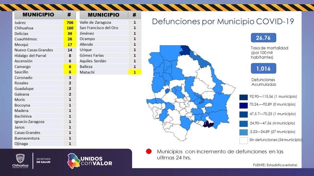 Rebasa Chihuahua el millar de fallecimientos por COVID-19 con 1,016