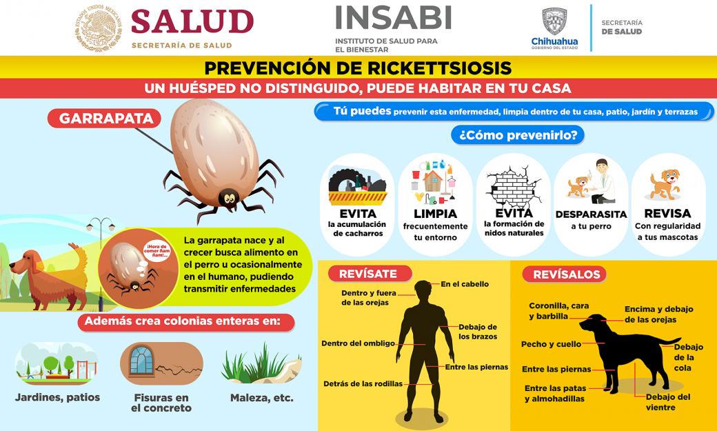 Para prevenir la rickettsiosis, recomendó mantener aseados los hogares, especialmente el patio y frente de la casa, sin cacharros o basura, además de resanar grietas de pisos o paredes y fumigar periódicamente.