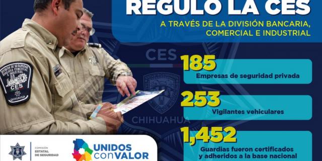 Como parte de las acciones emprendidas para regular, controlar y supervisar la prestación de servicios de vigilancia privada, la Comisión Estatal de Seguridad, a través de la División Bancaria, Comercial e Industrial, reguló en el estado durante el año 2019 a 185 empresas.