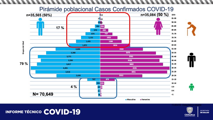 En cuanto a las infecciones, al día de hoy Ciudad Juárez alcanza las 32 mil 638, Chihuahua capital 20 mil 954, Parral 2 mil 970, Cuauhtémoc 2 mil 685, Delicias 2 mil 486, Nuevo Casas Grandes 1,256 y Ojinaga 1,246, como las poblaciones de mayor incidencia.