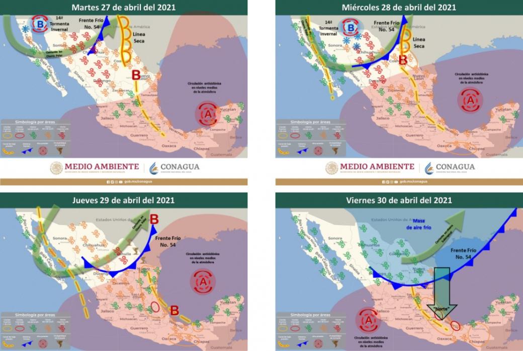 La Coordinación Estatal de Protección Civil (CEPC) informó que para este martes 27 de abril se pronostica el ingreso del Frente Frío 54 a la entidad, el cual traerá ráfagas de viento que podrían superar los 95 km/h principalmente en las zonas noroeste, occidente y suroeste durante los próximos dos días.
