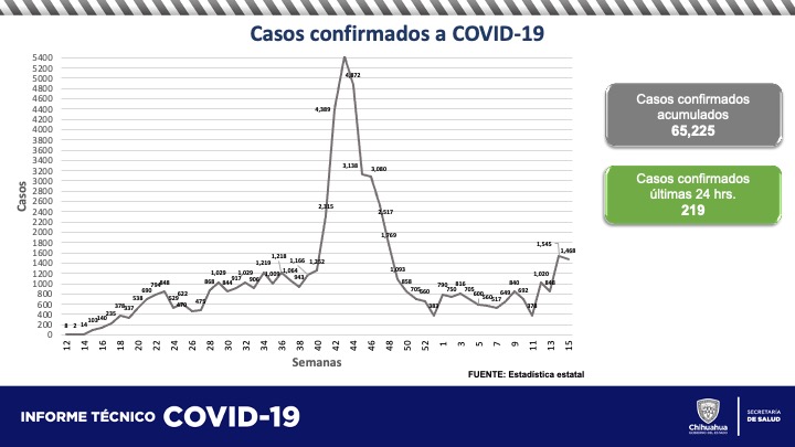 Informó además que hubo 219 personas infectadas, de las cuales 108 se registraron en la capital, 50 en Ciudad Juárez; 8 en Cuauhtémoc, Delicias, Nuevo Casas Grandes y Parral; 6 en Bocoyna, 3 en Guachochi y Camargo, y 2 en Gómez Farías y Satevó.