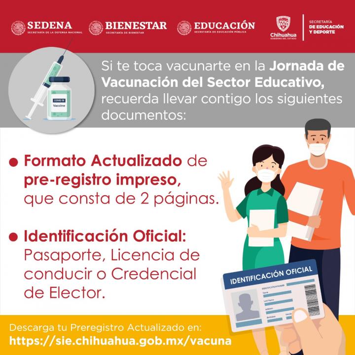 La dependencia indicó que para conocer la sede, fecha y hora de vacunación, es necesario ingresar a la página: https://sie.chihuahua.gob.mx/vacuna/, donde se debe introducir la Clave Única de Registro de Población (CURP), donde se desplegará una ventana con la opción Descargar Pre-registro.
