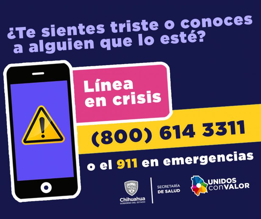 El programa de Salud Mental de la Jurisdicción Sanitaria II en Juárez, recomienda el uso de la ‘línea en crisis’, que es el servicio gratuito y continuo, donde marcando el número de (800) 614 3311 o bien el 911 de emergencias y pedir que lo transfieran, en ambas maneras serán los usuarios escuchados y atendidos por expertos que saben que en las fiestas decembrinas y aunado al confinamiento a la pandemia del Covid 19, se incrementan los cuadros depresivos entre la población.