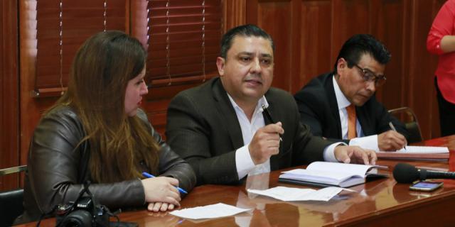 Joel Gallegos Legarreta, director de Gobernación, Mariano Olivares Avelar de la Secretaría de Gobierno y Karla Ivette González Islas en representación de la Comisión Estatal de Derechos Humanos escucharon al líder Mario Lerma y a otros representantes de la UNTA.