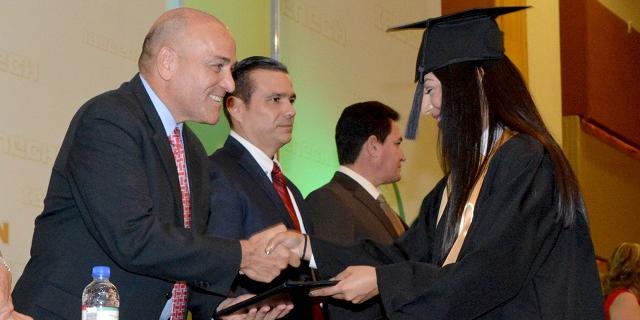 La ceremonia fue encabezada por el secretario de Educación y Deporte, Pablo Cuarón Galindo, quien manifestó que sin duda la labor más trascendente para un país es educar a su pueblo, por lo que este día la comunidad educativa está de fiesta, “pues hoy celebramos no sólo la culminación de sus estudios, sino su compromiso con la educación, porque está puesto en todos ustedes el futuro de la educación en nuestro estado y país”.