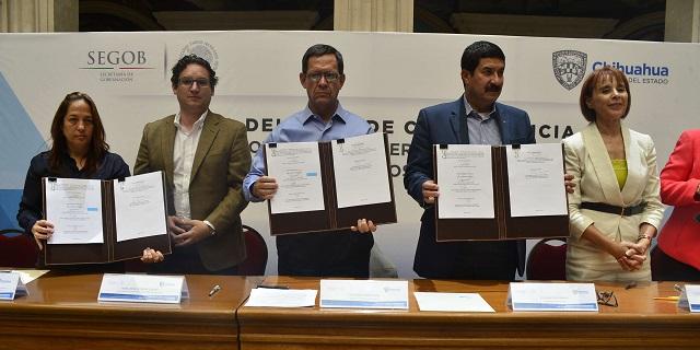 ​Chihuahua será modelo nacional, afirma el gobernador al firmar documento con el subsecretario de Derechos Humanos de la Secretaría de Gobernación, Roberto Campa Cifrián.