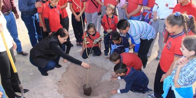 Previamente, la presidenta del DIF plantó dos árboles en la Escuela Primaria “Benito Juárez”, en compañía de los alumnos del plantel.