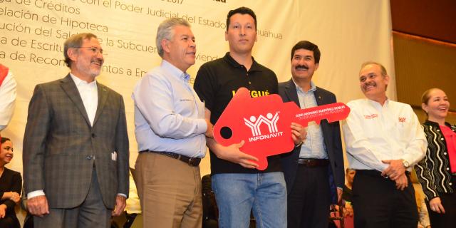 El gobernador Javier Corral y el director nacional del Instituto del Fondo de Vivienda para los Trabajadores (Infonavit), David Penchyna, entregaron escrituras, créditos, cancelaron hipotecas y signaron el Convenio de Mediación de Justicia Alternativa, para que la recuperación de las casas se realicen por medidas alternativas, sin la necesidad de llegar a la judicialización de los casos.