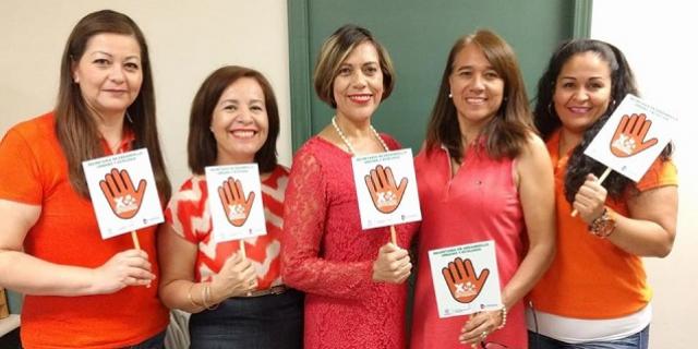 En del marco de la conmemoración del Día de la No Violencia contra Mujeres y Niñas, personal de la Secretaría de Desarrollo Urbano y Ecología (SEDUE), portó prendas de color naranja y abanicos, con el mensaje de apoyo a una vida sin violencia.
