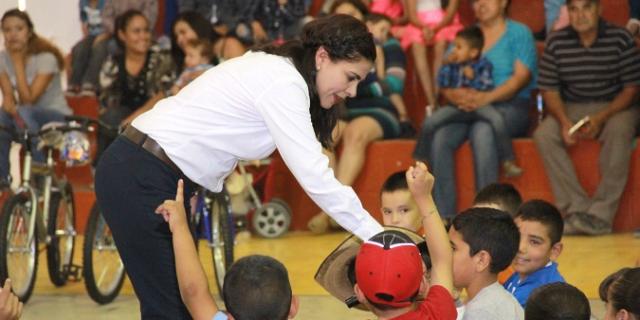 “En el gobierno de Javier Corral queremos celebrar el día del niño todos los días del año, porque todos los días del año trabajamos con ustedes, por ustedes y para ustedes. Estamos aquí para velar, fortalecer y para resguardar los derechos de las niñas y los niños para que puedan crecer felices, sanos, con una educación, en un hogar en donde los cuiden, los protejan y los orienten; esa es nuestra función y a eso estamos dedicados” dijo Cinthia Chavira en su visita a Guadalupe y Calvo antes de iniciar con la rifa de bicicletas y la entrega de dulces y juguetes en compañía del personal del DIF municipal, estatal y de autoridades locales.