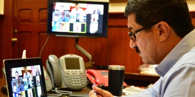 Con el esquema de reuniones virtuales, se atiende a la contingencia sin poner en riesgo de contagio a ninguno de sus colaboradores y se mantiene la comunicación constante con los integrantes del Gabinete.