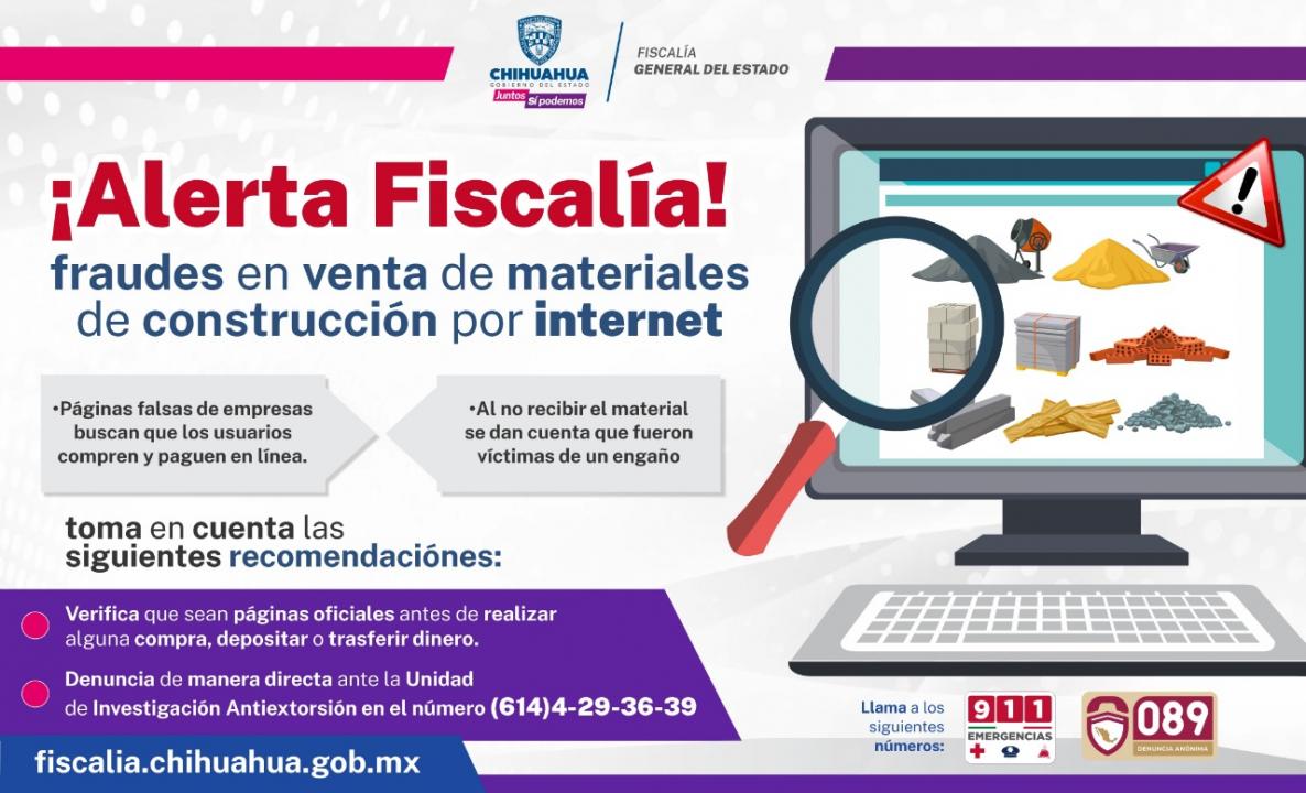 La Fiscalía General del Estado (FGE), alertó a la ciudadanía sobre la venta de material de construcción, a través de páginas web apócrifas.