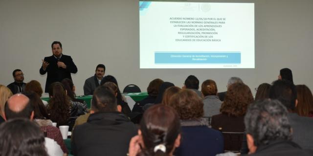 Con la participación de poco más de 180 personas, entre personal directivo de escuelas, supervisores de la zona centro y autoridades de la Secretaría de Educación y Deporte, se llevó a cabo la capacitación en materia de la nueva metodología para la evaluación de las y los estudiantes del nivel primaria.