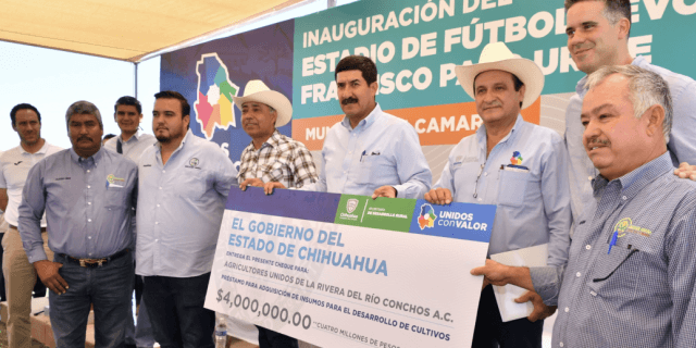 Javier Corral entregó a representantes de la asociación civil Agricultores Unidos de la Ribera del Río Conchos, un crédito por 4 millones de pesos en apoyo a la adquisición en tiempo de los insumos necesarios.