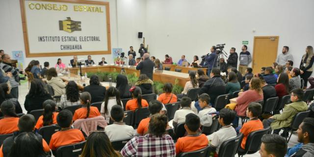 Se eligieron 19 cargos infantiles y 5 suplentes generales con apoyo del Instituto Estatal Electoral; participaron mil 396 alumnas y alumnos de sexto de primaria de los 67 municipios de la entidad