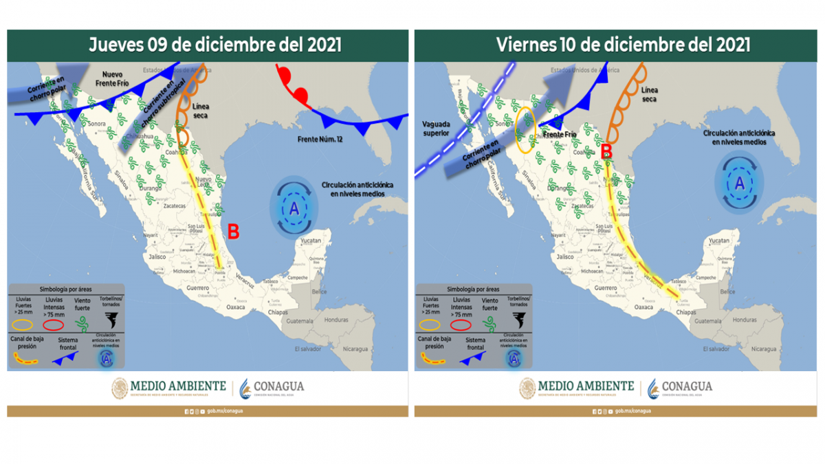 Asimismo, para el jueves, la aproximación del Sistema Frontal 13 desde el sur de Estados Unidos, prevé la presencia de fuertes vientos con mayor intensidad sobre la zona norte y lluvias en algunas regiones del estado.