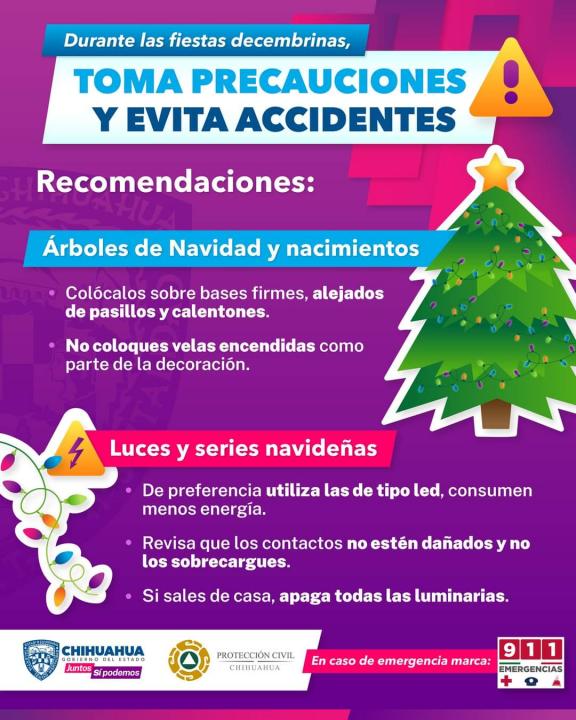 La Coordinación Estatal de Protección Civil exhorta a la población a disfrutar de una Navidad segura, y en caso de emergencia comunicarse al 9-1-1.