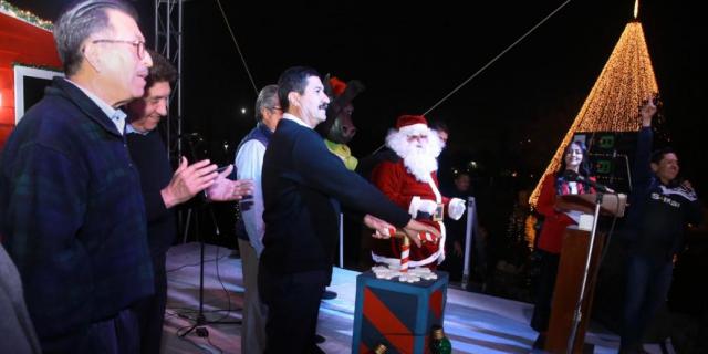El gobernador Javier Corral Jurado encabezó la tradicional ceremonia del encendido del árbol de Navidad en el Parque Central, en donde miles de familias fronterizas se dieron cita para dar inicio a los festejos navideños, propiciando el encuentro fraternal, abrazo solidario y el sentido de comunidad.