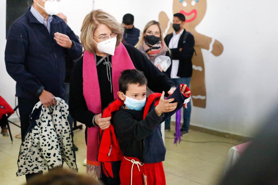 El Gobierno del Estado, a través del DIF Estatal, hizo entrega de 200 chamarras a niñas y niños de Riberas del Bravo en Ciudad Juárez, en un evento encabezado por la presidenta del DIF Estatal, María Eugenia Galván Antillón, durante el cual también se repartieron 400 despensas a familias vulnerables del sector.