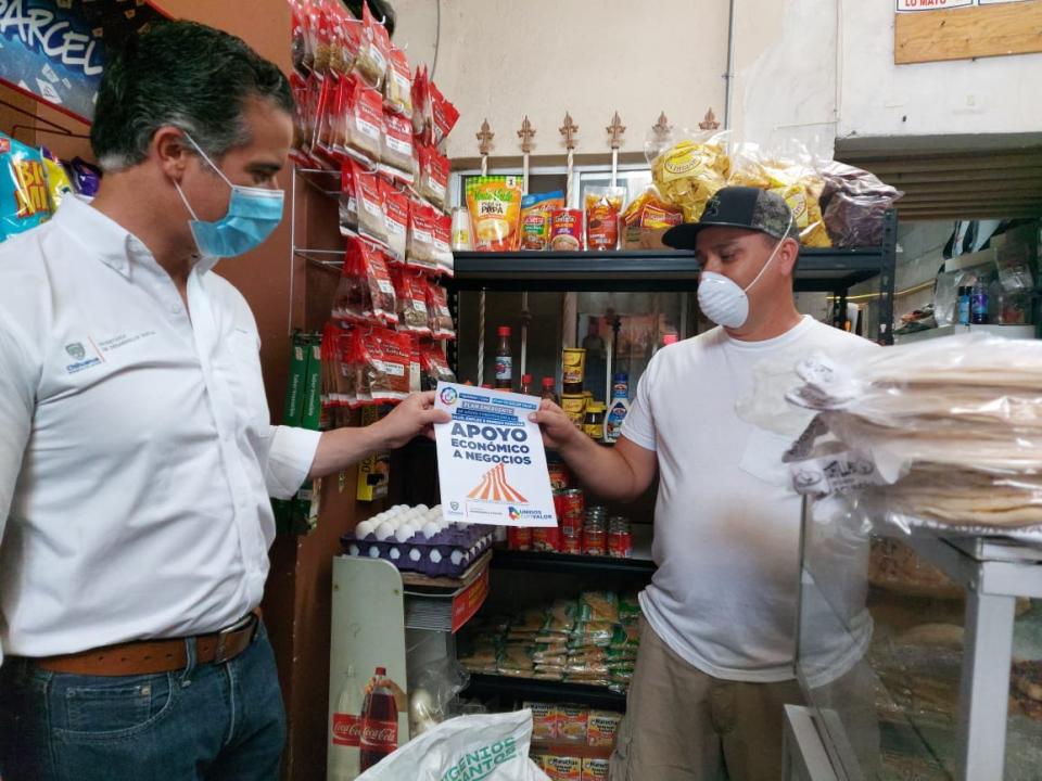 El secretario de Desarrollo Social, Luis Aguilar Lozoya, realizó un recorrido por varios establecimientos para repartir estos apoyos que les permitirán a los dueños de estos negocios contar con recursos para el pago de nómina y proveedores durante esta contingencia sanitaria.