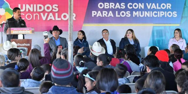 De gira por el municipio de Ascensión, el gobernador Javier Corral Jurado inauguró el equipamiento de la plaza en el Ejido 6 de Enero y supervisó obras como un dispensario médico, unos baños públicos y juegos infantiles, un domo y trabajos de ampliación de las redes de agua potable y alcantarillado, entre otros que se realizan en diversas comunidades.