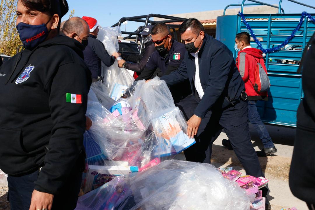Elementos de la Secretaría de Seguridad Pública Estatal (SSPE), encabezados por el Comisionado Estatal de Seguridad, Simeón Esparza Peynado y el Jefe Operativo Zona Norte, Ricardo Realivázquez Domínguez, hicieron entrega de cientos de juguetes y bicicletas a niñas y niños radicados en el fraccionamiento Senderos del Sol, en el suroriente de Ciudad Juárez.