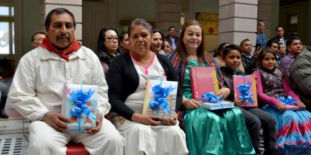 La ceremonia de entrega de libros de texto a estudiantes y guías para el docente, se llevó a cabo en la Casa Chihuahua Centro de Patrimonio Cultural, encabezada por el secretario de Educación y Deporte, Carlos González Herrera y la directora general de Educación Indígena de la SEP, Rosalinda Morales Garza.