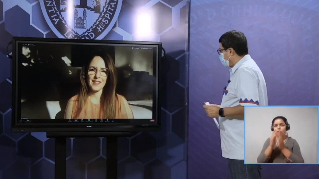 A través de un enlace vía Zoom, la directora de Desarrollo Comunitario de Americas Mining Corporation, Irma Potes, y el director corporativo de Sustentabilidad, Francisco López Guerra, informaron sobre los donativos para a la población chihuahuense.