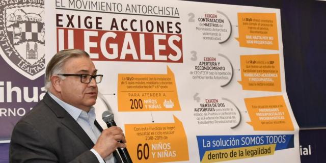 Sin embargo, ante una nueva obstrucción por parte del movimiento, 148 menores actualmente están fuera de la regularización escolar, debido a la insistencia de Antorcha sobre un inmediato reconocimiento de su pretendido centro escolar, al igual que la inscripción ficticia de estudiantes y la contratación inmediata de sus propuestas docentes, observó.