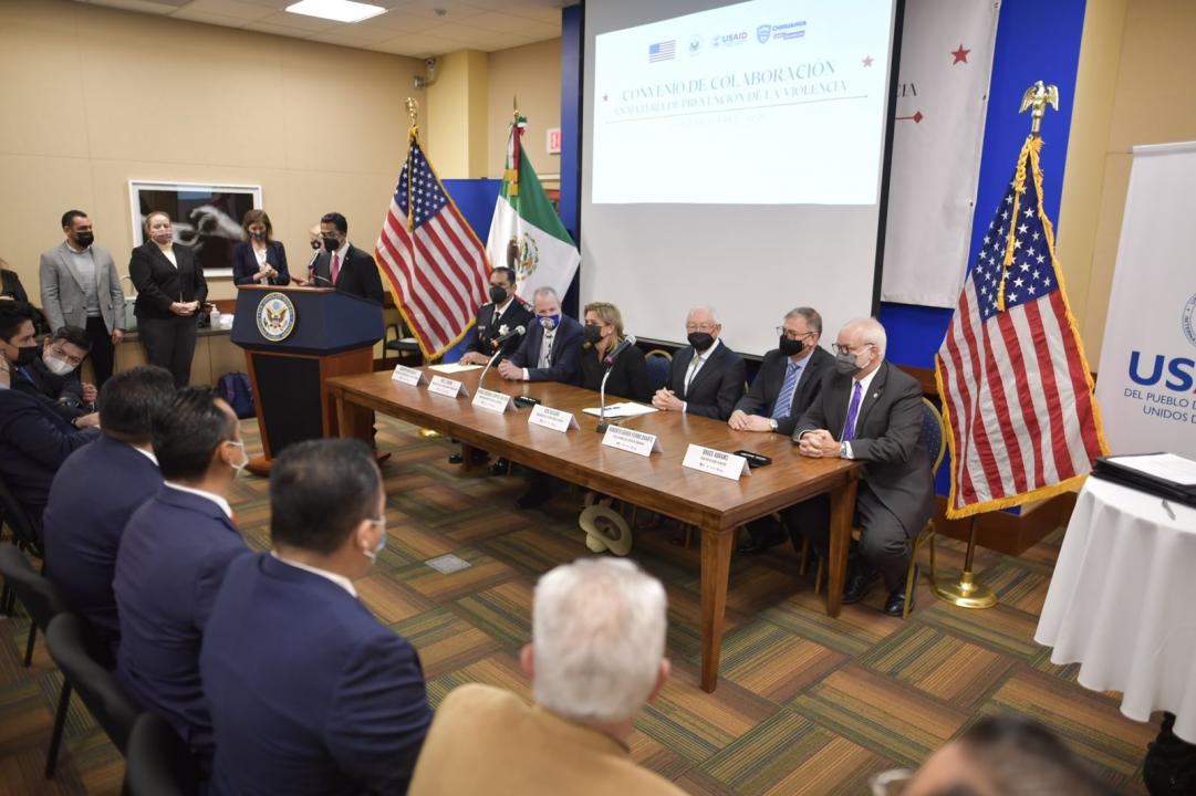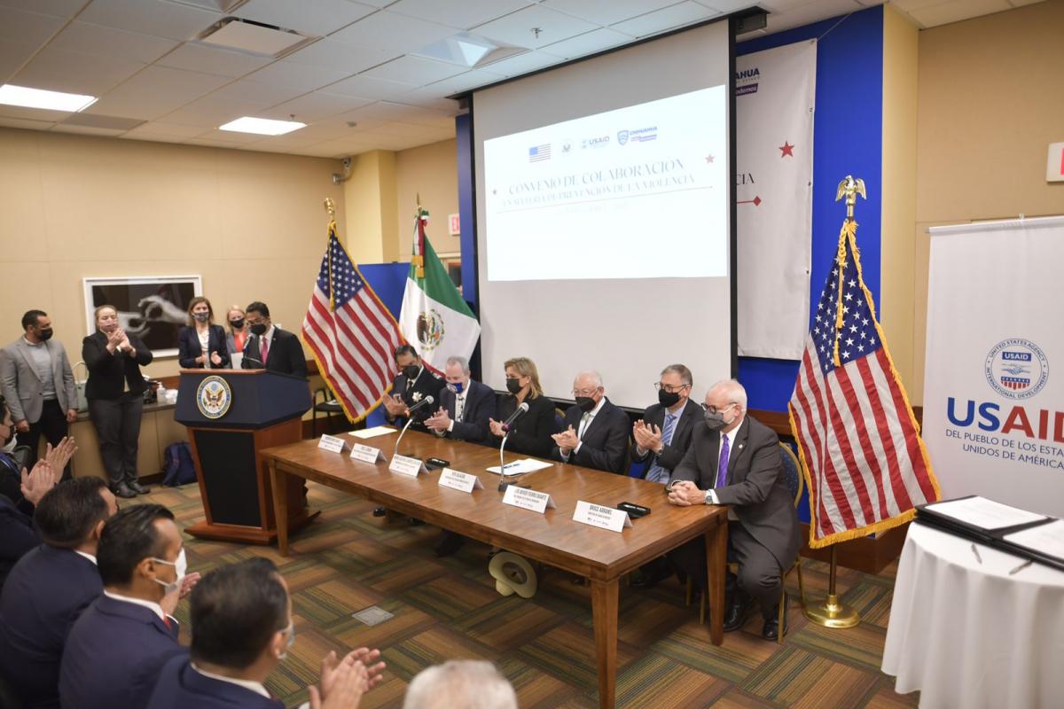 En seguimiento al compromiso del Gobierno del Estado de mantener la seguridad de las y los chihuahuenses como uno de los principales puntos de atención, la gobernadora del Estado de Chihuahua, Maru Campos Galván, acudió a Ciudad Juárez con el objetivo de firmar el convenio de colaboración entre el Estado de Chihuahua y la Agencia de los Estados Unidos para el Desarrollo Internacional USAID para generar estrategias que prevengan la violencia en los municipios de nuestra entidad.