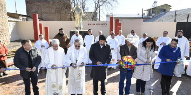 El gobernador Javier Corral Jurado inauguró en Ciudad Madera la plaza construida en honor a Fray Justo Goizueta, quien fuera el primer obispo de la entonces prelatura de la localidad.