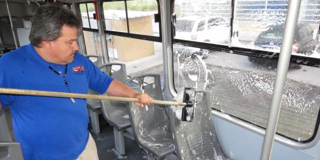 El interior de las unidades se limpia de manera frecuente con una mezcla de jabón y cloro, y se presta especial atención en las zonas como pasamanos y asientos, informa la Dirección de Transporte