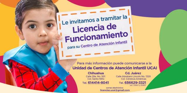 Con el objetivo de garantizar la seguridad y derechos de las niñas y los niños y que sean atendidos en espacios de cuidado óptimos en todo el estado de Chihuahua, la Secretaría de Desarrollo Social, a través de la Unidad de Centros de Atención Infantil (UCAI), invita a las personas responsables de estos centros a tramitar su licencia de funcionamiento.