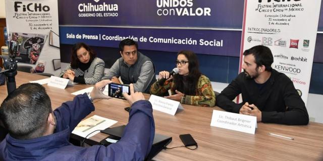 Con apoyo del Gobierno del Estado, la Presidencia Municipal, el Buró de Convenciones Chihuahua y diversas asociaciones y marcas, se presenta en esta capital por primera vez, el Festival Internacional de Circo y Chou de México (Ficho), con espectáculos de talla nacional e internacional y 10 países invitados.