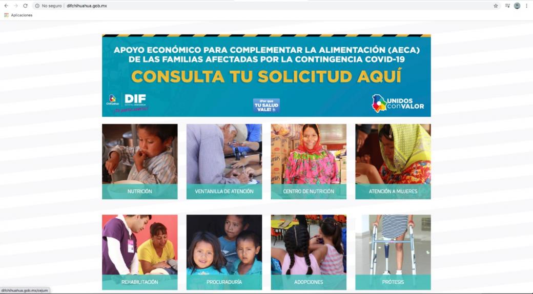 El DIF Estatal Chihuahua puso en marcha una plataforma digital para que las personas que se inscribieron en el Programa de Apoyo Económico Complementario a la Alimentación (AECA) puedan consultar su trámite, con su número de folio.