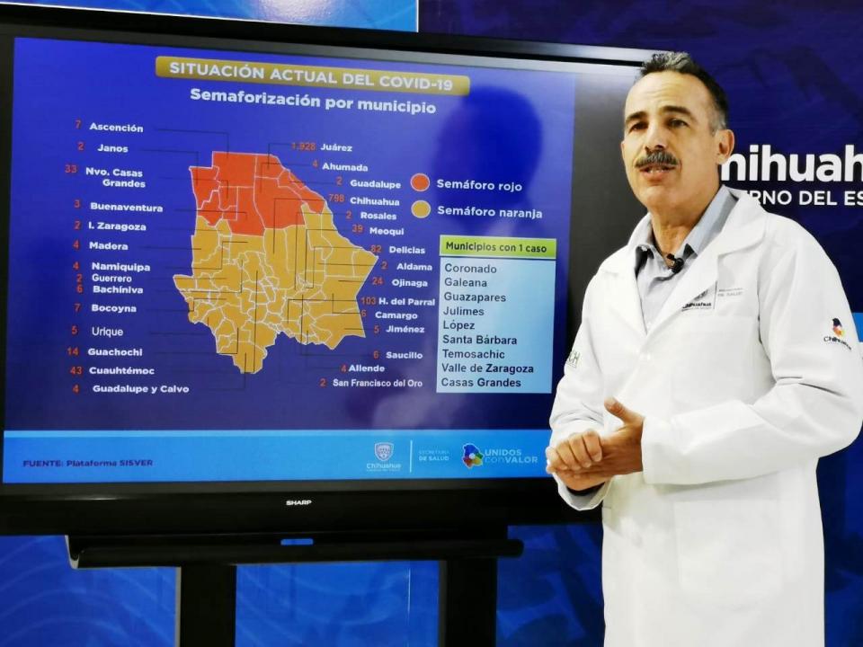 El Reporte COVID-19 Conferencia Informativa #127-Virtual #83, señala que del total de confirmados, 1,928 pertenecen a Juárez, 798 a Chihuahua, 6 a Bachíniva, 43 a Cuauhtémoc, 24 a Ojinaga, 4 a Namiquipa, 39 a Meoqui, 1 a Julimes, 6 a Camargo, 6 a Saucillo, 4 de Ahumada, 2 a Guadalupe D.B., 14 a Guachochi, 82 a Delicias, 7 de Ascensión, 2 a Guerrero, 7 a Bocoyna, 4 a Madera, 103 a Parral, 3 a Buenaventura, 1 a Temósachi, 1 a Galeana, 4 a Guadalupe y Calvo, 33 a Nuevo Casas Grandes, 2 a Rosales, 5 a Jiménez, 2 de Aldama, 1 a Santa Bárbara, 2 a Ignacio Zaragoza, 1 a López, 5 a Urique, 2 a Janos, 2 a San Francisco del Oro, 1 a Guazapares, 4 de Allende, 1 a Coronado, 1 a Valle de Zaragoza y 1 a Casas Grandes.