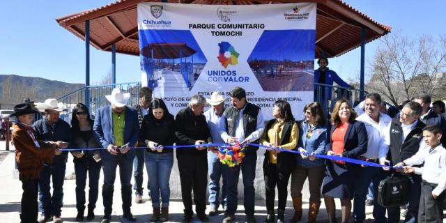 El Parque Comunitario Tomochi, construido con una inversión conjunta de 3 millones de pesos entre Gobierno del Estado, Municipio de Guerrero y vecinos por medio del Comité Pro-Obras y Participación Ciudadana, fue entregado por el gobernador Javier Corral.