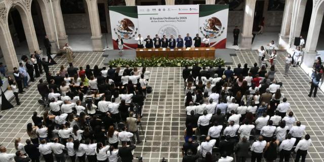 Peniche Espejel dio la bienvenida a los representantes de los estados de Sinaloa, Sonora, Baja California, Baja California Sur, Tamaulipas, Nuevo León, San Luis Potosí, Durango y Chihuahua como anfitrión de esta Sesión que se desarrolla en Palacio de Gobierno.