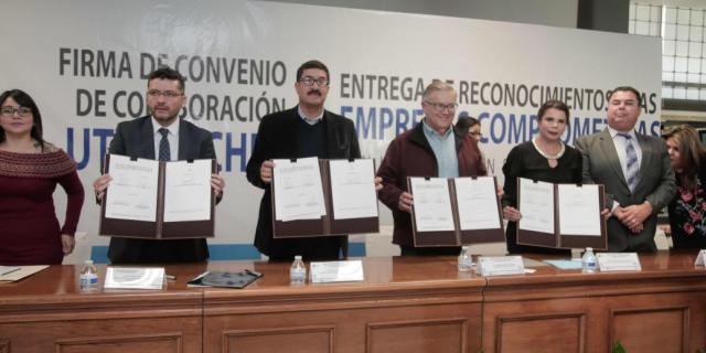 El gobernador Javier Corral firmó el convenio entre la Universidad Tecnológica Paso del Norte (UTPN) y el Instituto Chihuahuense para la Educación de los Adultos (Ichea), para impulsar la conclusión de educación básica de las personas adultas que aún no la hayan terminado.