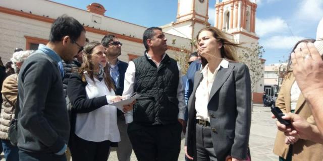Con el fin de atender las recomendaciones del INAH, la secretaria de Innovación y Desarrollo Económico (SIDE), Alejandra de la Vega y el titular de la Secretaría de Obras Públicas, Gustavo Elizondo expusieron el proyecto ante la coordinadora nacional de Monumentos Históricos, Valeria Valero.