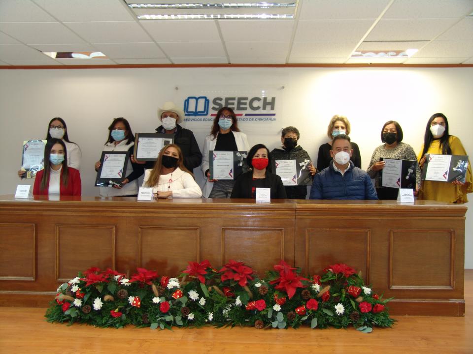 En reconocimiento a sus labores en apoyo a las actividades educativas en favor de docentes y estudiantes del estado, Servicios Educativos del Estado de Chihuahua (SEECH) entregó diplomas y relojes conmemorativos a personal de Apoyo y Asistencia a la Educación, por su trayectoria de 30 a 50 años de servicio.