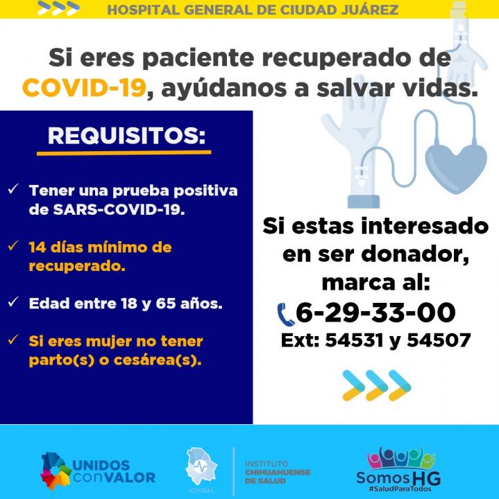 Desde el pasado 24 de mayo la Secretaría de Salud del Estado lanzó la solicitud pública de donantes de sangre, en específico aquellos chihuahuenses que hayan sido dados de alta a la enfermedad de Sars-Cov-2, conocido como Covid 19, ya que su “Plasma Convaleciente” según estudios mundiales es de gran ayuda para enfermos que tienen ese padecimiento respiratorio.