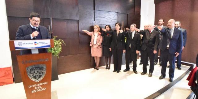 Toma protesta el gobernador Javier Corral a Antonio Suárez Estrada como presidente del Consejo de Notarios y destaca la coordinación del gremio con el Gobierno, así como la transparencia en el otorgamiento de patentes.