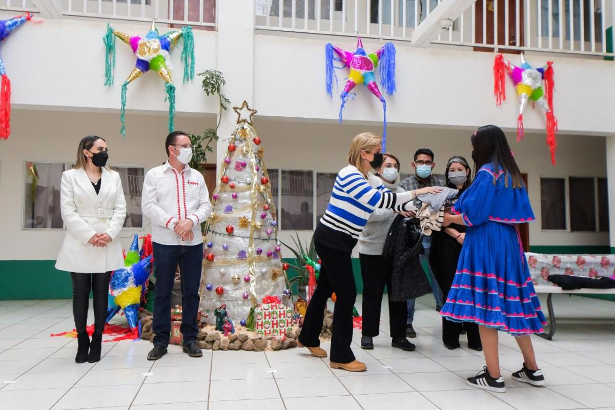 La titular del Ejecutivo Estatal estuvo acompañada por la presidenta del DIF Estatal, María Eugenia Galván Antillón, quien coordina el programa “Juntos sin frío”, que distribuye chamarras en diversos municipios de la entidad.